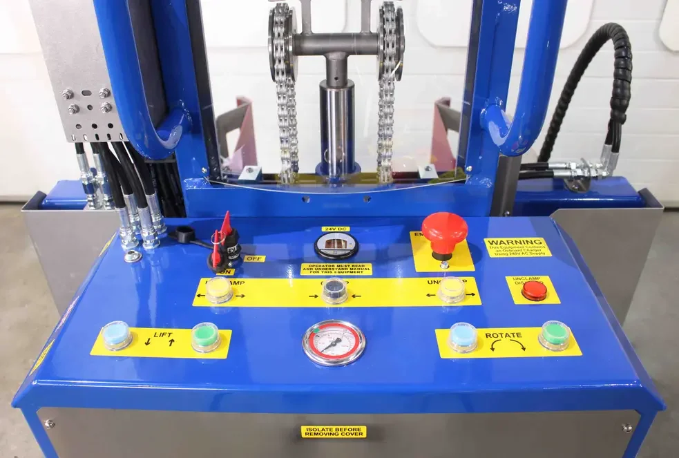Our electrical engineers install safe and compliant circuits in every machine we manufacture. Each circuit includes mandatory features such as emergency stop buttons and key switch power isolators. Each and every power clamp model includes a hydraulic clamp pressure gauge. This gauge is used to monitor the clamp pressure during lifting operations ensuring drums remains secure at all times.