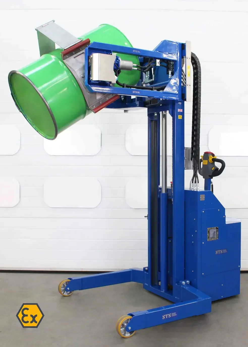 Suitable for safe areas, this fully-powered drum tipper comprises an onboard battery bank along with two separate electric motors. When the unit is not in use, simply connect the mains power to the charger to ensure the unit remains in a fully-charged state at all times.
