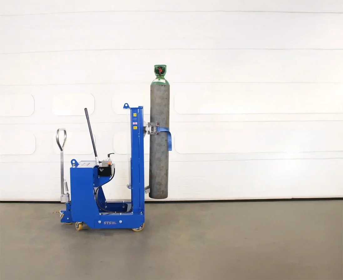 Adjustable cylinder securing using a ratchet and strap arrangement for cylinders with diameters of 7.08” (180mm) to 17.7” (450mm)