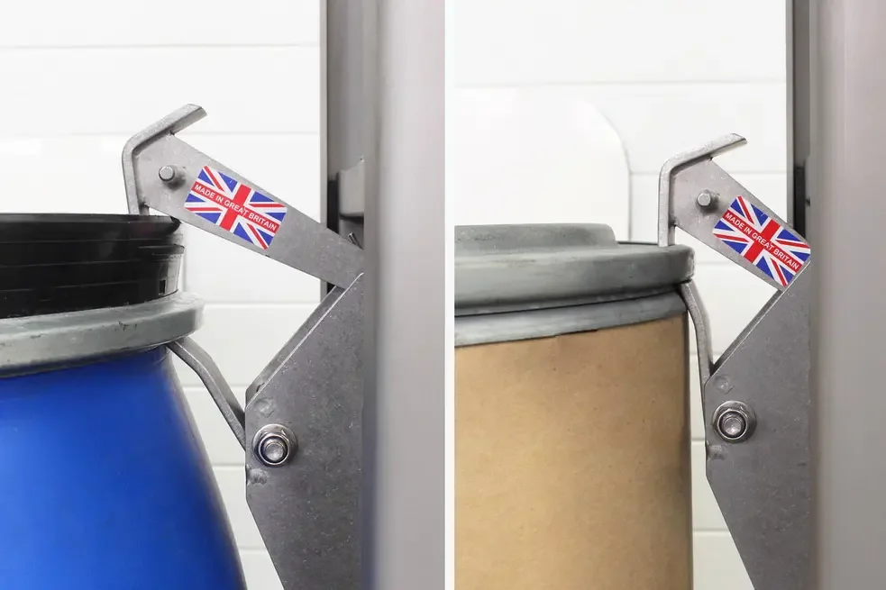Designed with versatility in mind, the unique STS drum catch can handle, among others, tight-head, open-top, L-ring and MAUSER-style drums with ease; to adjust the catch setting operators simply adjust the position of the top hook. For lifting very unusual drums such as plastic screw-top drums, or bulbous plastic barrels we can offer different attachments and adapters for our drum lifters. See our drum suitability document for more information on compatible drum types or alternatively please get in touch.