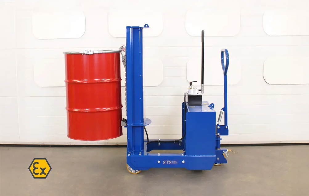 The stainless steel drum mover has a unique design that straddles a pallet from one side. The central lifter body goes over the top of the pallet enabling you to lift drums located on all four corners of a pallet.