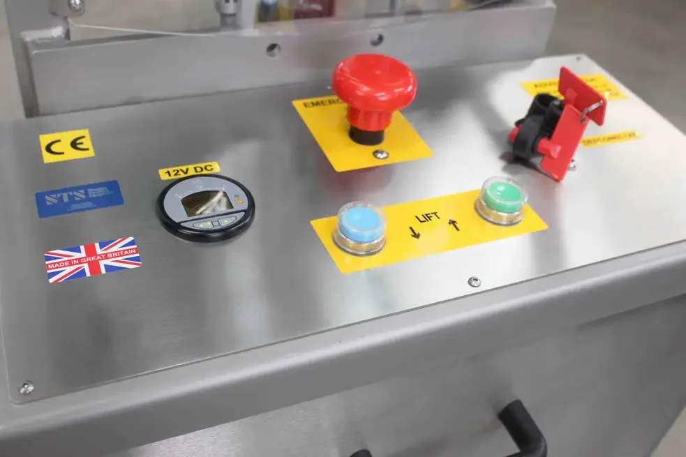 All-electric lift drum tipper circuits we assemble are fully compliant with the relevant standards. Our engineers install mandatory safety features such as power isolators and emergency stop buttons to each and every unit. A battery condition meter located on the rear control panel informs operators of the state of charge of the battery; the unit makes use of a smart battery charger, this conditions the battery and when full provides a trickle charge.